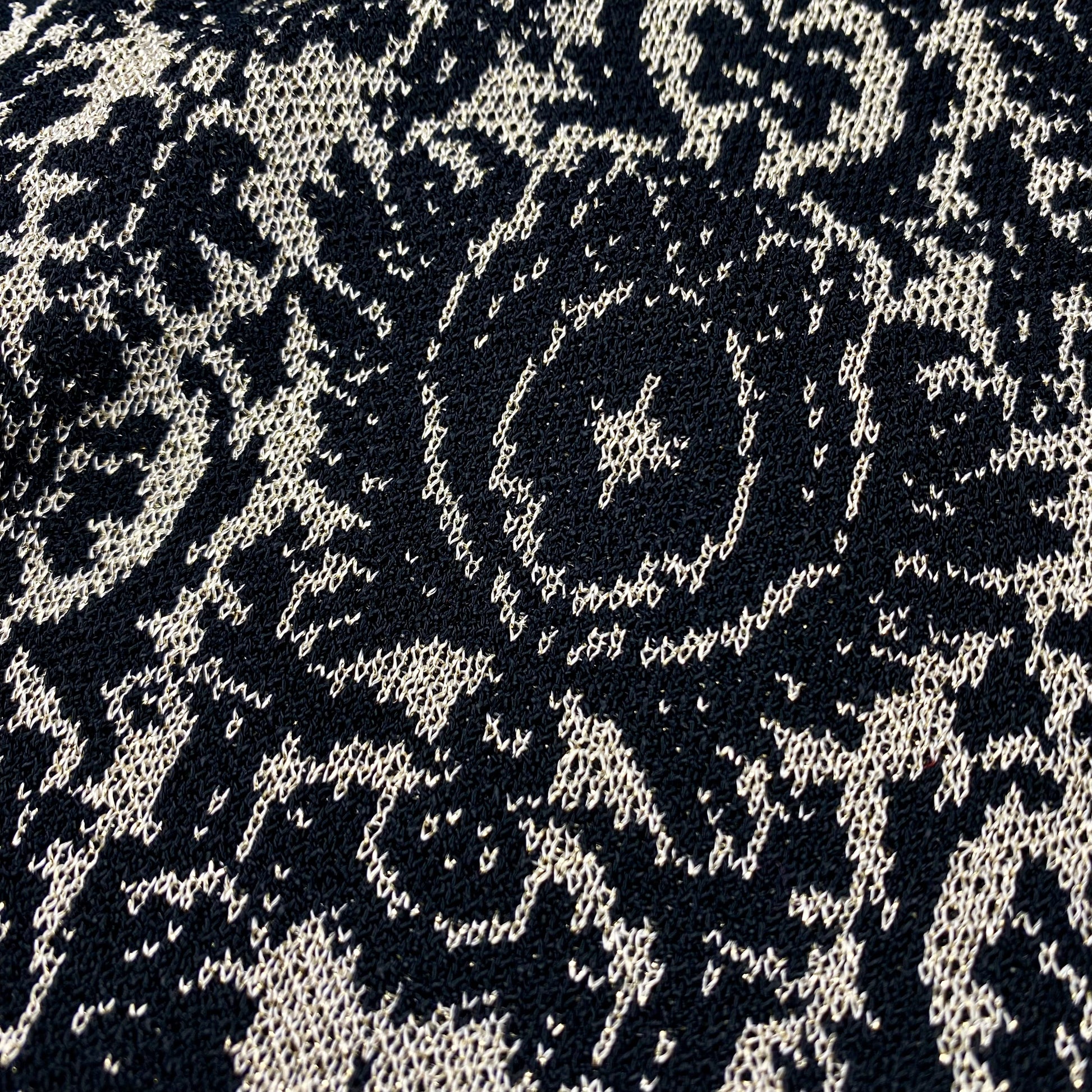 Elegante vest van Max Mara. Zwart en goudkleurig ontwerp met metallic gouden draden en een bloemmotief. Voorzien van clipsluiting aan de voorkant, twee zakken aan de voorkant en effen zwarte lijnen langs de voorkant en mouwen.