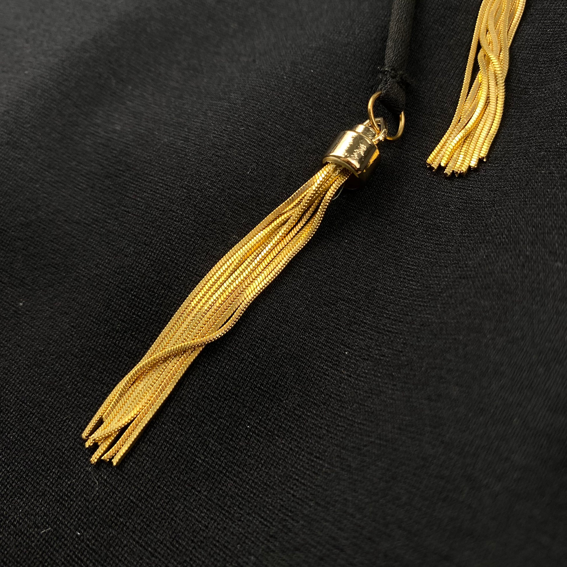 Elegante jurk van Sisley. Klassiek zwart ontwerp met 3/4 mouwen en een sleutelgat aan de voorkant, geaccentueerd met gouden metalen details. Niet gevoerd voor een lichtgewicht gevoel.